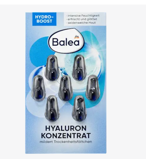 Концентрат гіалуронової кислоти Balea забезпечує інтенсивне зволоження та зменшує появу дрібних зморшок.** Гіалуроновий бустерний комплекс стимулює синтез гіалуронової кислоти в шкірі* та підтримує процес її регенерації. Крім того, активний комплекс інгредієнтів з гіалуроновою кислотою зв’язує воду в шкірі та допомагає наповнити її зсередини. Для відчуття свіжої, гладкої та шовковисто-м’якої шкіри.