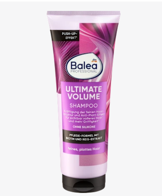 Шампунь Ultimate Volume від Balea Professional перетворює тонке, сплющене волосся на об’ємну гриву. Його спеціальна формула, що містить біотин та екстракт рису, зміцнює тонку структуру волосся та забезпечує чудовий ефект проти сплющення. Це дбайливе очищення не тільки видаляє забруднення, але й живить волосся, не обтяжуючи його. Результатом є помітно густіше, слухняне волосся зі здоровим блиском.