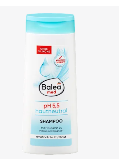 Шампунь Balea MED з pH 5.5, нейтральний для шкіри, очищає волосся та чутливу шкіру голови без мила. Значення pH 5.5 відповідає природному значенню pH кислотної мантії здорової шкіри. З маслом ши, пантенолом та м’яким цукровим поверхнево-активним речовиною. Для живленого, гладкого та блискучого волосся.