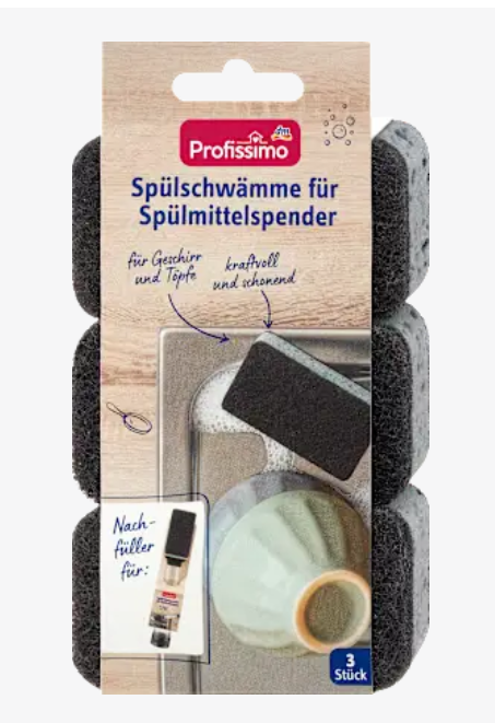 Губки для диспенсерів засобу для посуду Profissimo – ідеальне доповнення для ретельного, але дбайливого очищення. Спеціально розроблені як змінні насадки для диспенсерів засобу для посуду, вони ідеально підходять для посуду, склянок, каструль та сковорідок. Губки з абразивною губкою забезпечують потужну ефективність очищення, не пошкоджуючи делікатні поверхні. Практичні у використанні, вони є незамінним помічником для щоденного миття посуду. Заміна губки в диспенсері дуже проста завдяки системі липучок: щільно притисніть губку вузькою чорною губкою (не протилежною, ширшою чорною абразивною стороною) до гачків диспенсера та потягніть її вперед і назад, щоб гачки та губка зчепилися.
