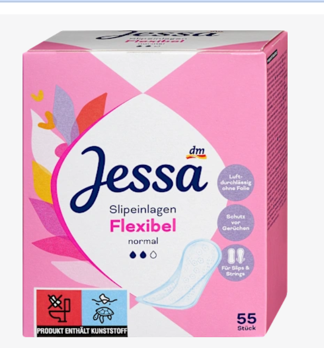 Гнучкі щоденні прокладки Jessa забезпечують винятковий комфорт завдяки м’якій флісовій поверхні. Конструкція без плівки робить їх особливо ніжними до шкіри для щоденного використання. Високоефективна абсорбуюча серцевина швидко та надійно утримує рідину. Запахи також ефективно утримуються всередині прокладки. Це робить їх ідеальними для щоденного захисту під час легких виділень, періодів легкого виділення або згасання менструації, а також як додатковий захист при використанні з тампонами. Для відчуття свіжості щодня.