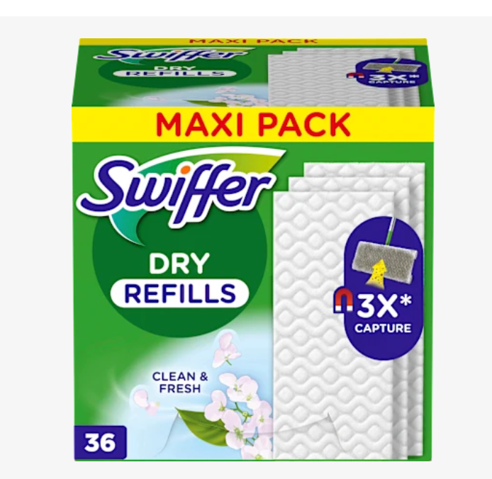 - 36 змінних серветок Swiffer Dry для очищення та свіжості